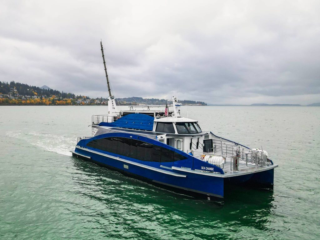 Bien nommé Sea Change, le ferry de 21 mètres de long et pouvant accueillir 75 passagers desservira plusieurs arrêts le long du front de mer de San Francisco. Il a été construit au chantier naval All American Marine à Bellingham, dans l’état de Washington.